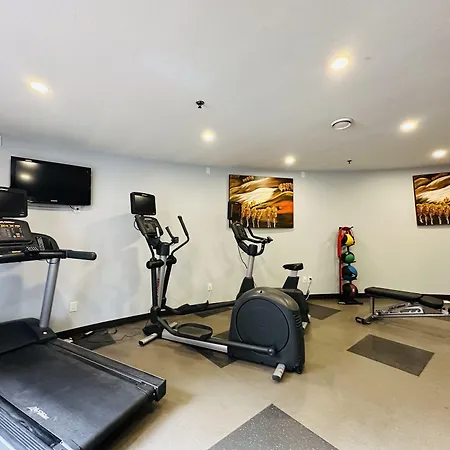 1-slaapkamer Canmore Mountain Retreat - Heated Pool & Hot-Tub biedt uitzicht op de berg en zorgt ervoor dat gasten toegang hebben tot fitnesslessen. Binnen 20 minuten lopen van dit 63 m^2 grote appartement vindt u het Centennial Park.